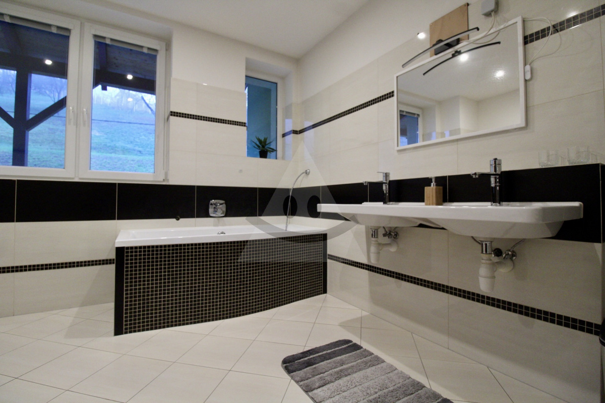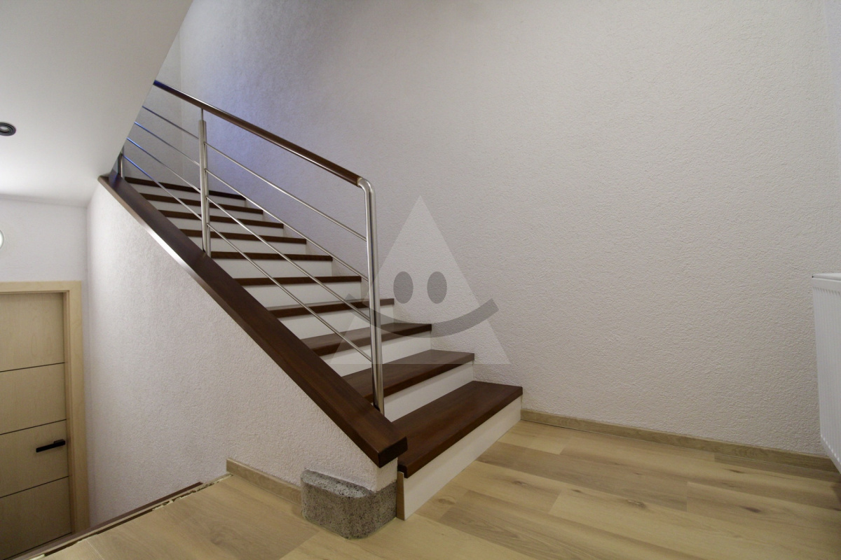 Dominantou domu je prízemie, kde nájdete priestrannú obývaciu izbu čiastočne prepojenú s modernou kuchyňou, špajzou, kúpeľnu so sprchovacím kútom a WC a práčovňu. Schodiskom sa presuniete na 1.poschodie, ktoré disponuje dvomi detskými izbami, spáľnou a nechýba ďalšia kúpeľňa s WC a vaňou. Krásny výhľad z tohto poschodia si môžete vychutnať vďaka samostatnému balkónu. Podkrovie, ku ktorému sa dostanete pokračujúcim schodiskom, je aktuálne využívané ako odkladací priestor, avšak s možnosťou vytvorenia ďalšieho plnohodnotného bývania. Suterén rodinného domu ponúka okrem troch miestností aj technickú miestnosť so sprchovacím kútom a WC.