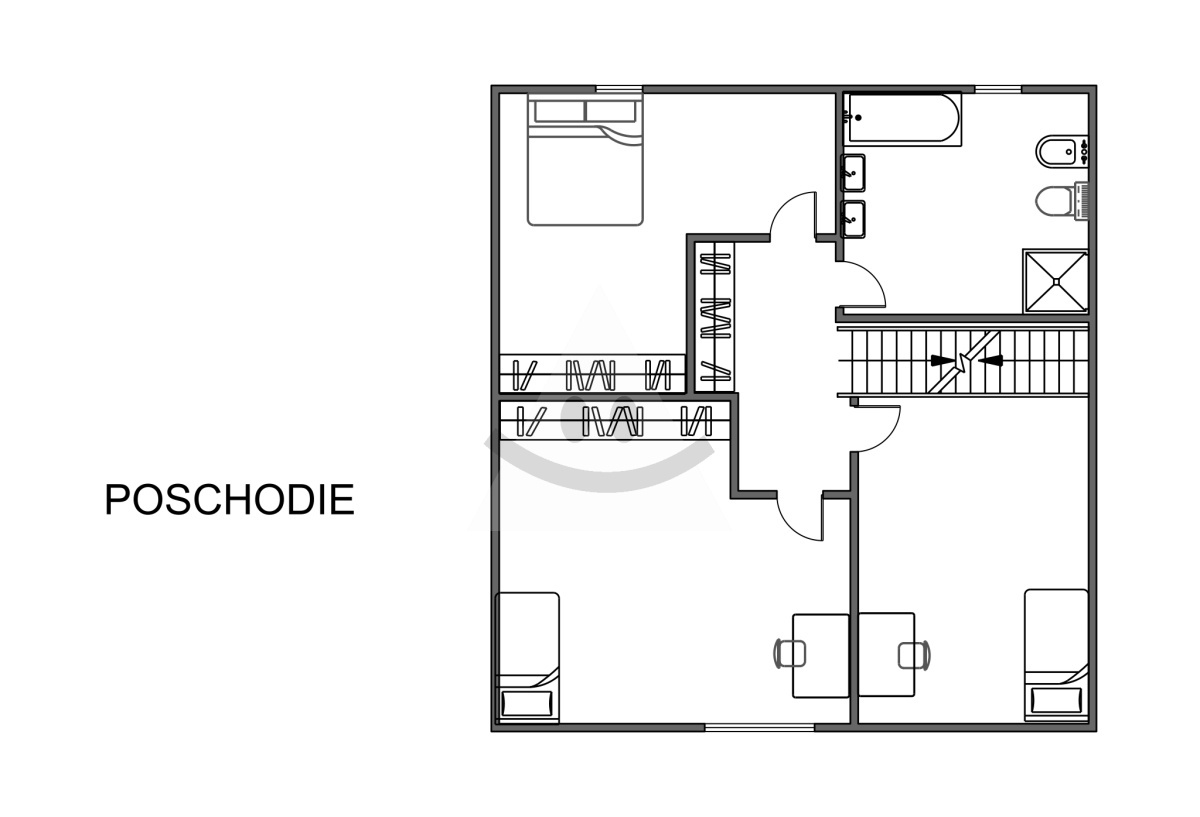 Okrem prízemia, kde nájdeme vstupnú chodbu, priestrannú obývaciu izbu s krbom, prepojenú s kuchyňou, kúpeľňu s WC a technickú miestnosť, sa dreveným schodištom prenesieme do podkrovnej časti, ktorú tvorí spáľňa, dve izby a priestranná kúpeľna.