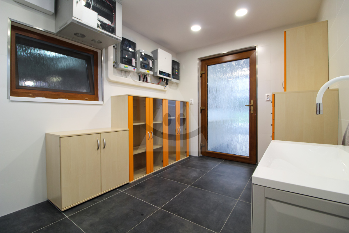 Vykurovanie je podlahové, ovládané individuálne v každej miestnosti, pomocou tepelného čerpadla so solárnymi panelmi. V rodinnom dome je klimatizácia.