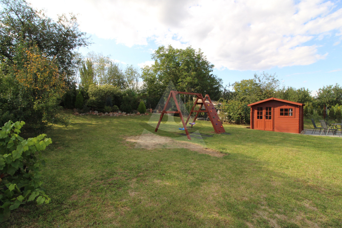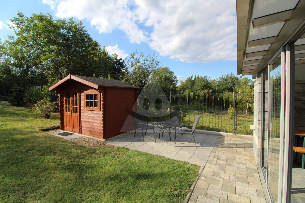 Rozloha pozemku približne 400 m2 zahŕňa záhradu so skalkou, záhradný domček a detské preliezky.